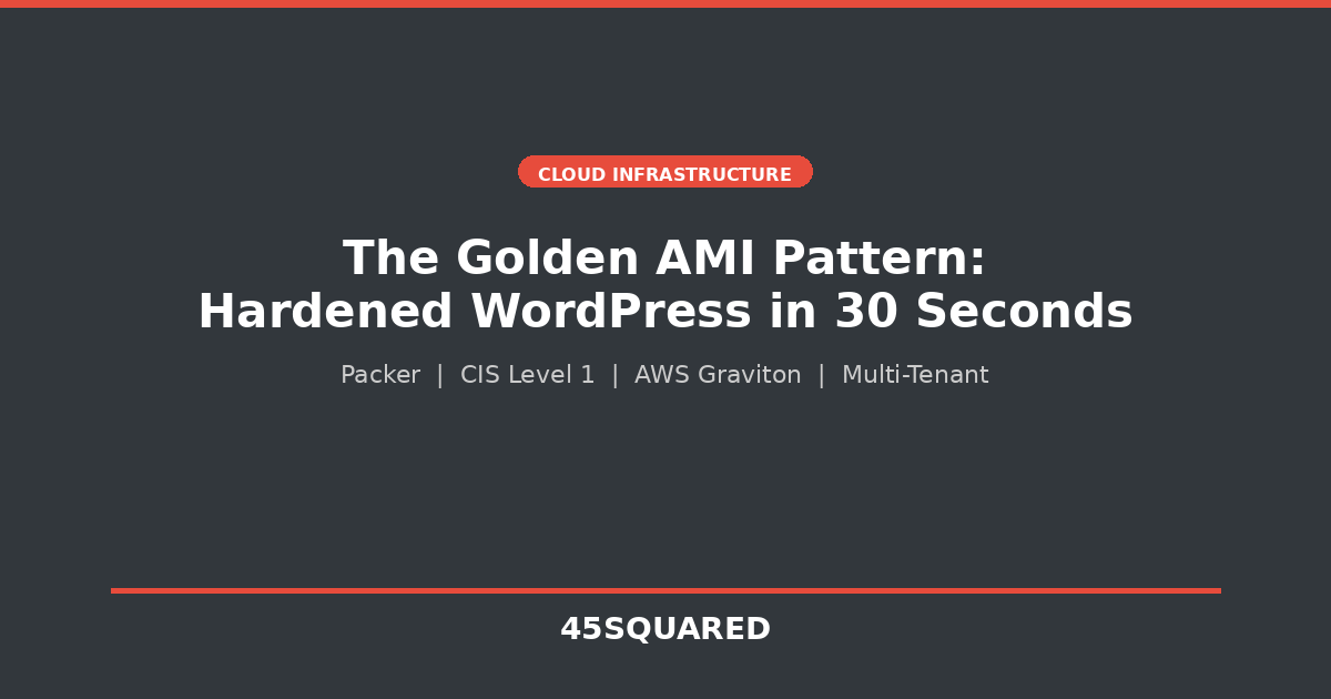 Traditional server provisioning takes 10+ minutes and introduces drift. We bake everything — security hardening, runtime, application stack — into a single immutable AMI image. Here's how 45Squared provisions CIS Level 1 compliant WordPress sites in 30 seconds.